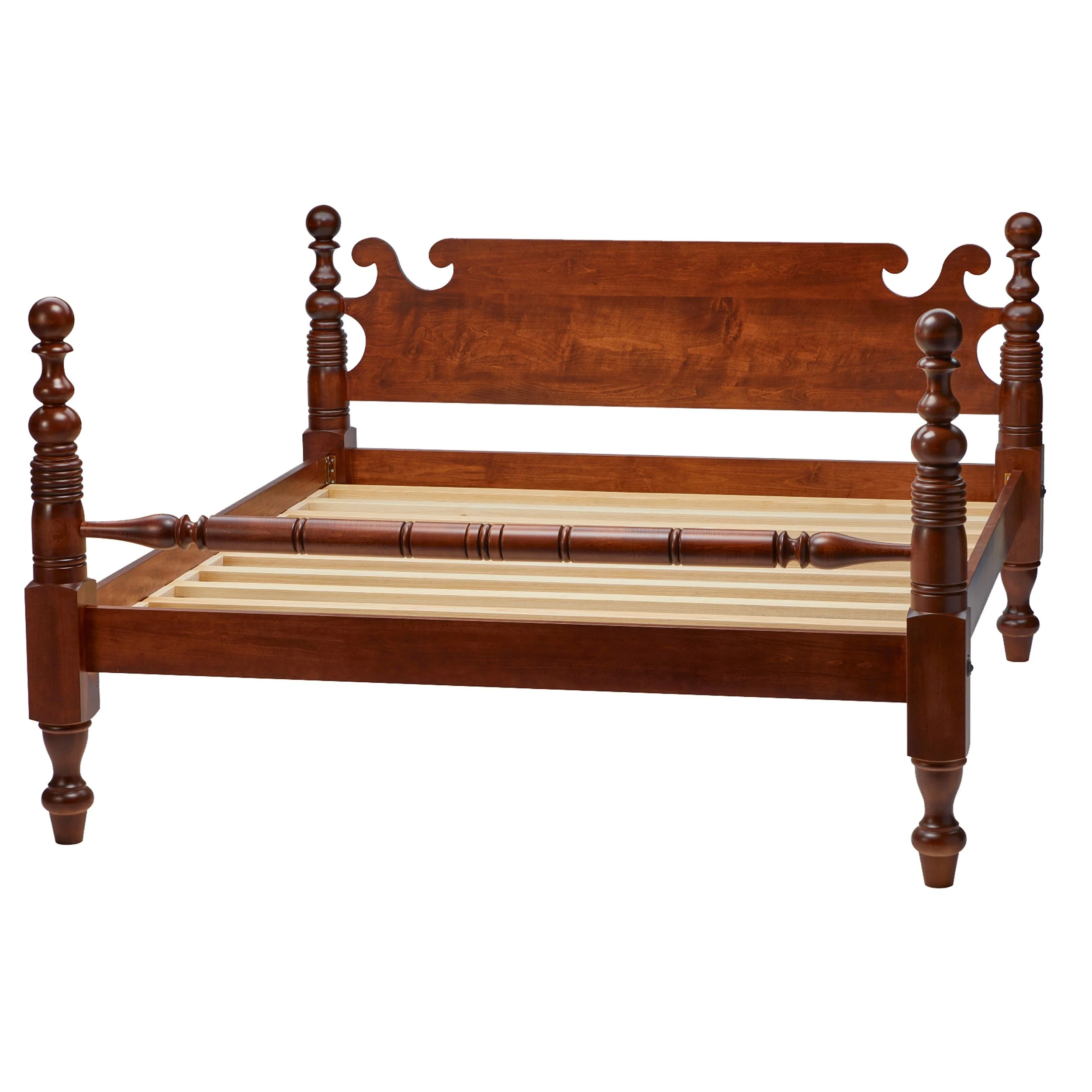 Towering posts echo our signature turnings. Choose your headboard style and design. This bed can be customized into different sizes, stains and colors.